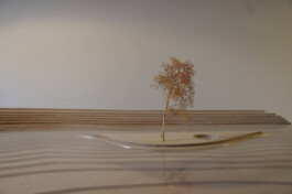 A piece of shore breaks off and a temporary island is formed. The break-off is subtle - a weight sensor provides the impulse. The island then drifts away slowly, almost unnoticed. Half an hour passes before the island docks on land again. No influence can be exerted on the journey, you can only surrender to the situation. A large tree and a perfectly circular hole serve as a tension between natural and artificial moments of irritation.