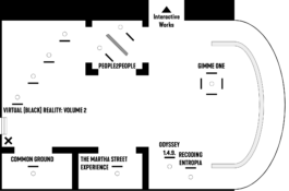 Based on the real venue at the BFI Southbank, the virtual venue is also designed in a brutalist style and set under the River Thames. The works are virtually staged spatially according to their content using assets, light and sound settings.