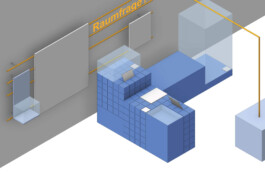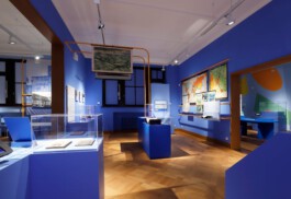 The design in the room and in the graphics is based on a design grid, which is inspired by lines and boxes from exercise books and on which modules and content are arranged. The atmosphere of a lively schoolyard provides the inspiration for moments of exchange. On the one hand, this subtly reflects the regulated structures in which pupils still move around today, and on the other hand, school can be experienced as a lively and inspiring place. The boxes are visible as patterns on the modules and the “exercise book lines” as orange round tubes on the walls and in the room, which structure the entire exhibition. An interplay of blue tones creates thematic areas with a modern, inviting and timeless aesthetic.
