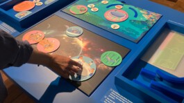 Interactive formats, such as the object wall with digital station, allow visitors to playfully discover similarities and connections between different objects whose affiliation is not obvious at first glance. At the interactive “dream school table”, on the other hand, visitors can playfully put together their own visions for the school of the future in an analogue way.