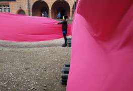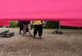 SHIFT consists of long, pink fabric banners that create different spatial situations on the square depending on their position. Inspired by C. Alexander's “A Pattern language”, the different approaches to dealing with public spaces are analysed. The theme of the conference “urban transformation through arts and culture” and the aspect of ”placemaking“ are playfully thematised by the installation and made visible at the site of the event through five patterns/situations. The perception of the square and its surroundings changes depending on the pattern and leads to exciting interactions between the visitors and the site.